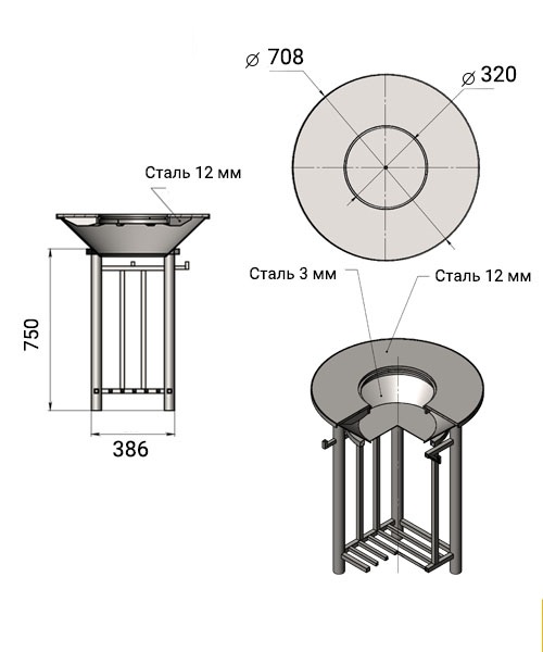 Подставка под казан в комплекте.