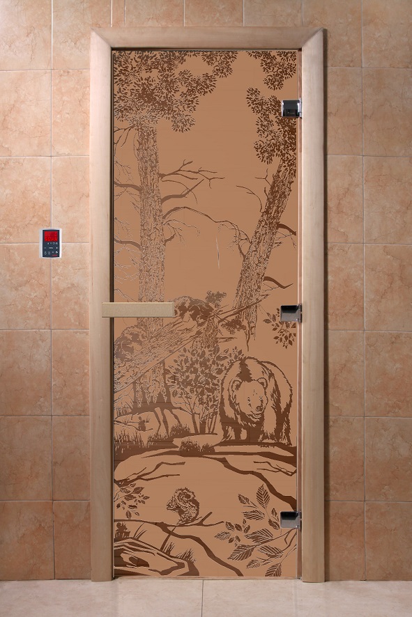 Дверь для сауны "Мишки в лесу" (матовая) 190х70 в Владимире | Доставка по России