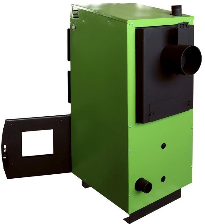 Котлы DRAGON-Bio — это универсальный котел, модельный ряд от 12 кВт до 60 кВт. Высокий КПД котла (до 88% на дровах, до 92% на угле, до 94% на пеллетах). Котел изготовлен из листовой стали 09Г2С (низколегированная сталь толщиной 5 мм выдерживает влияние широкого диапазона температур в условиях многолетних нагрузок и различных деформаций, не теряя пластичности), позволяет увеличить срок службы котла (более 20 лет). Стопроцентная чистка теплообменника, камеры сгорания и конвекционных каналов. Высокая универсальность. Котел укомплектован второй нижней дверцей, одна дверь с отверстием под горелку, вторая глухая с поддувалом для эксплуатации на дровах или угле с регулятором тяги, это позволяет без демонтажа горелки переходить с одного вида топлива на другой. Все дверцы могут быть переставлены и открываться как слева направо, так и справа налево (заводская установка дверок — открывание слева направо) для возможности установки котла как в левом углу котельной, так и в правом. Регулируемая заслонка вторичного воздуха позволяет, осуществлять дожиг пиролизных газов, выделяющийся в процессе горения древесины. В целях безопасности удаления золы перед колосниками установлена заглушка-отбойник для предотвращения выпадения из котла горящих углей при топке дровами или углем.  Котлы имеют увеличенную зольную часть и не требуют частого обслуживания.